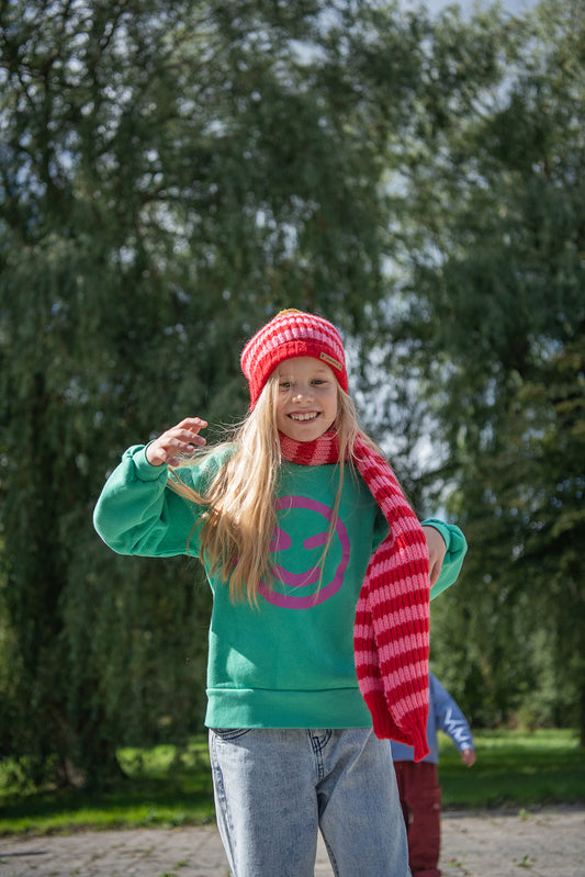 Piupiuchick Knitted scarf pink and raspberry stripes