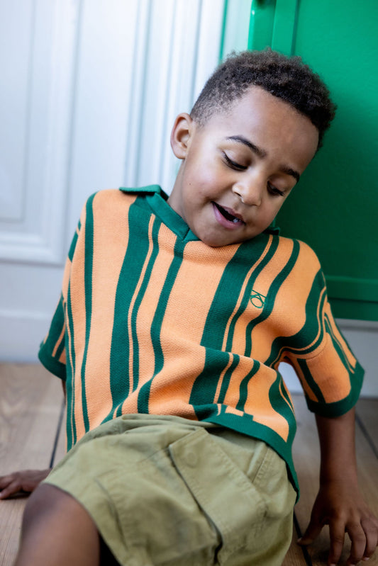 Main Story Short polo green peach knit