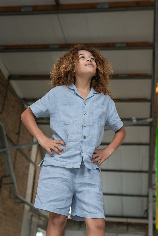 Play Up Boy Linen Shorts Grey Blue / 8Y