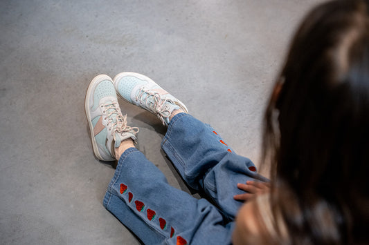 Tinycottons STRAWBERRIES embroidered jeans light blue denim / 12Y
