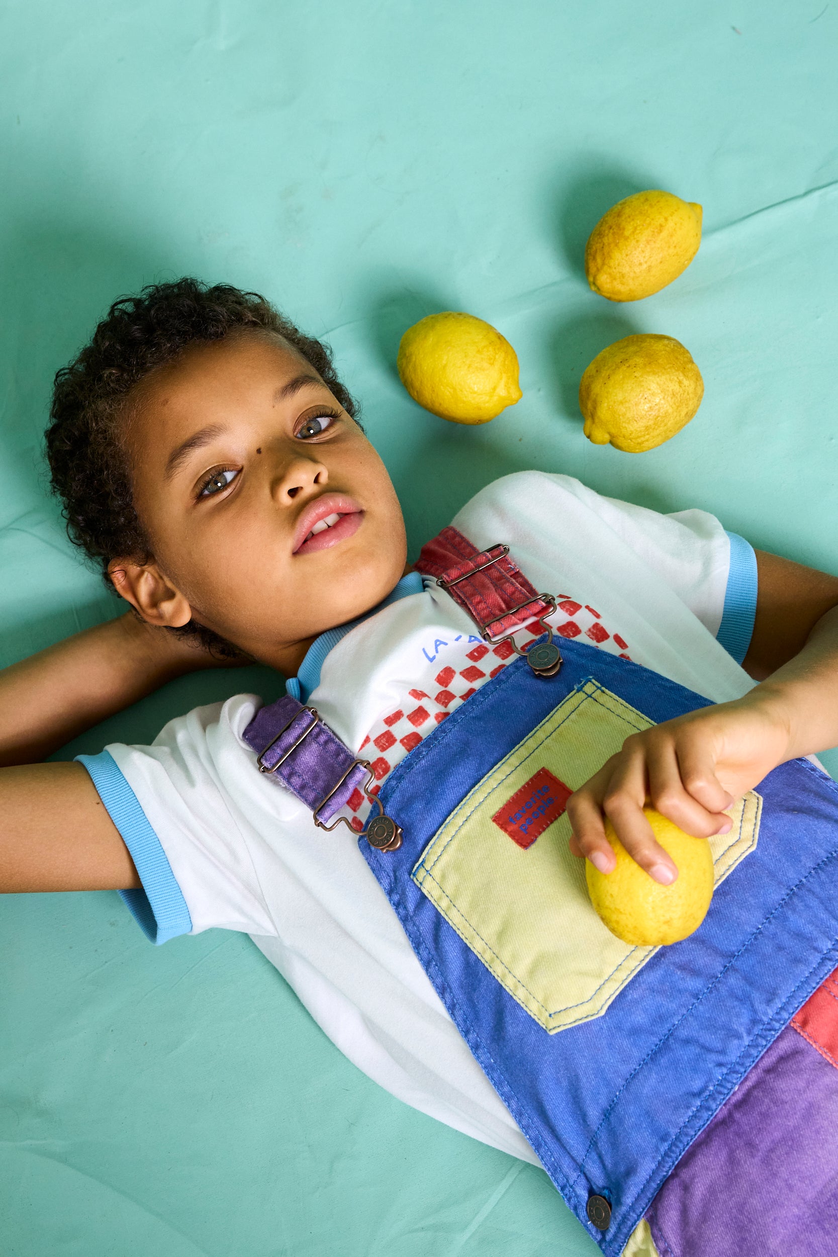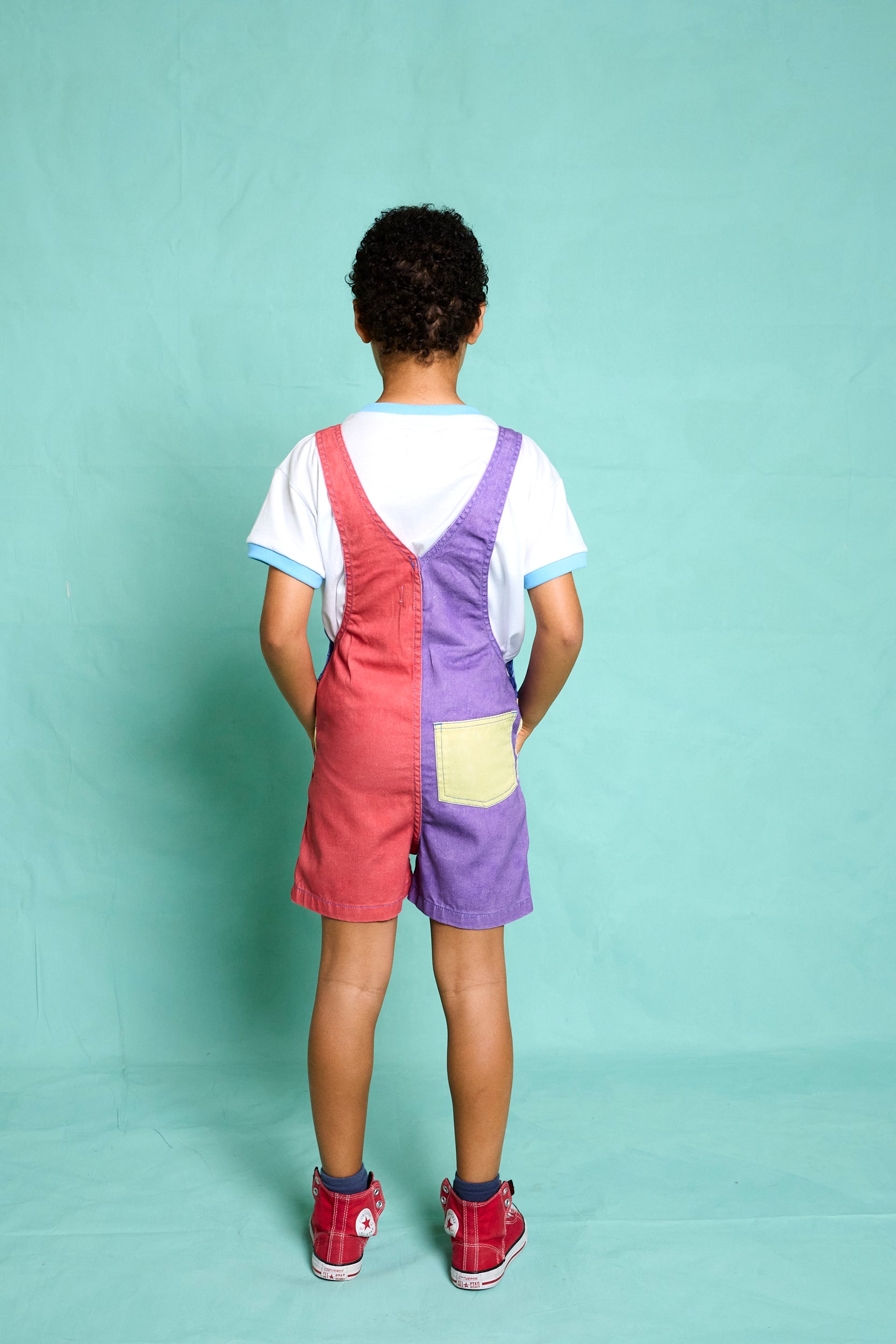 This colorful shorts overall from Favorite People brings a touch of nostalgia to the modern wardrobe.