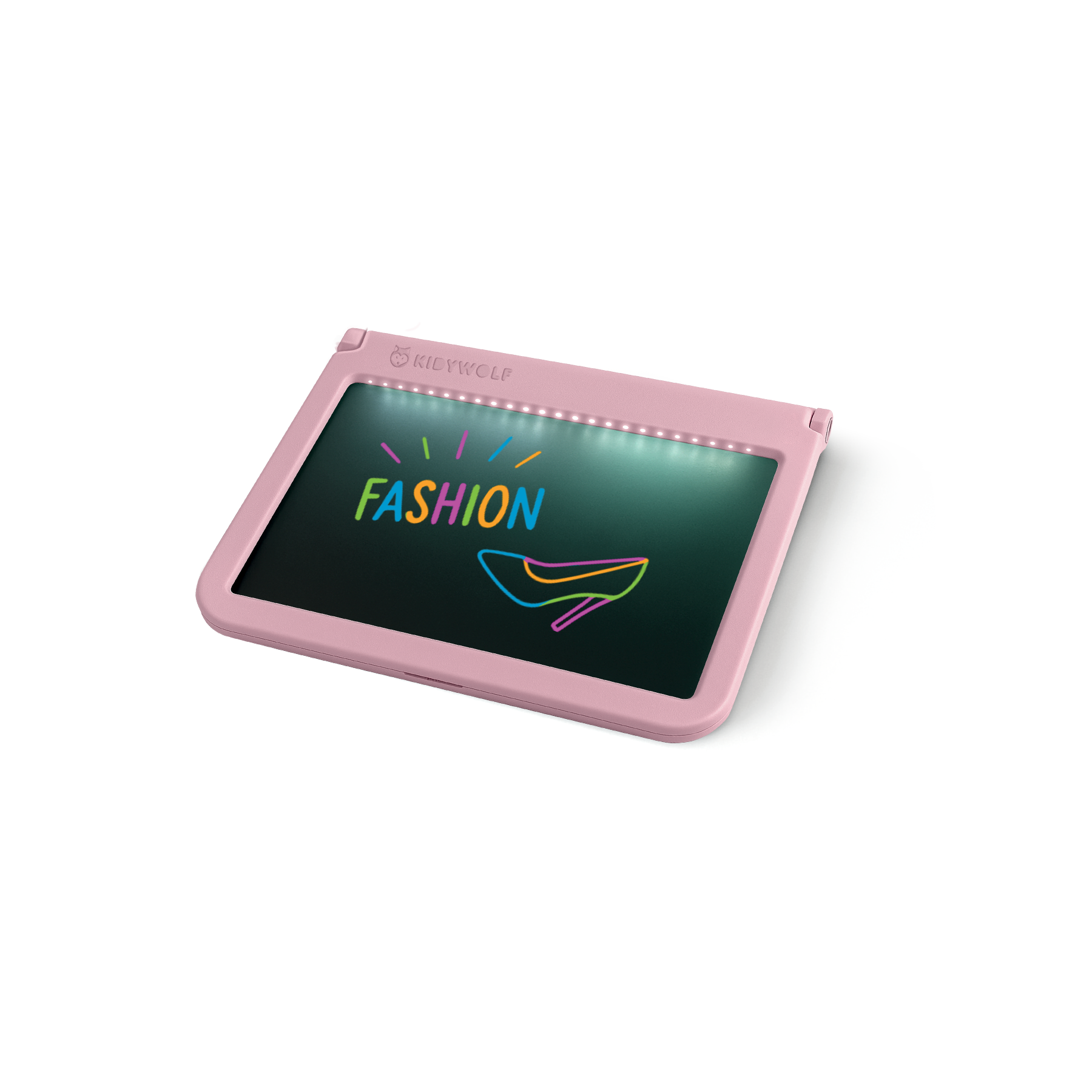 De KIDYDRAW PRO is een mobiel oplichtende tablet. Je kind kan letters, cijfers of een bestaande tekening nauwkeurig reproduceren. De 2-zijdige achterkant doet ook dienst als schoolbord met een neoneffect dat de kleuren van de tekening van je kind in het donker laat uitkomen.