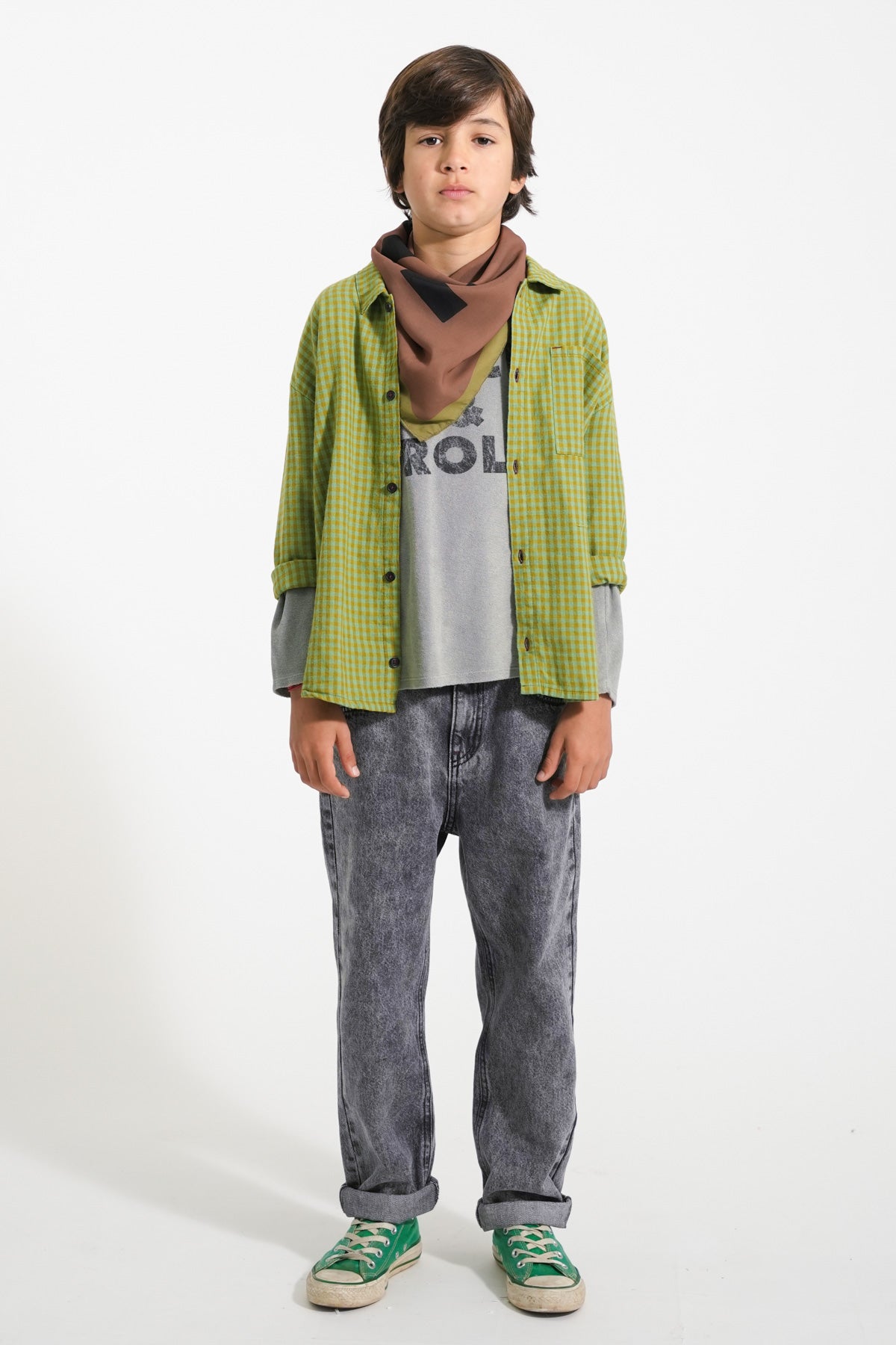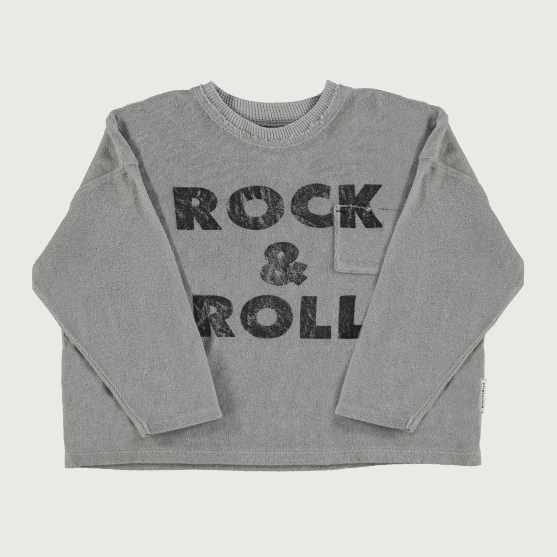 Piupiuchick Terry cotton long sleeve T-shirt grey with ROCK 'N ROLL print / 8Y