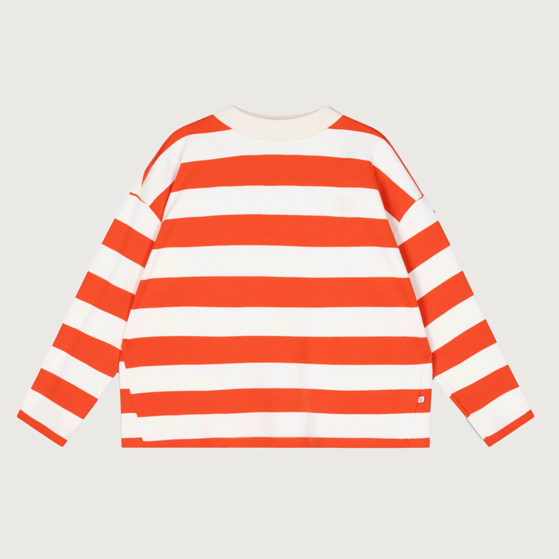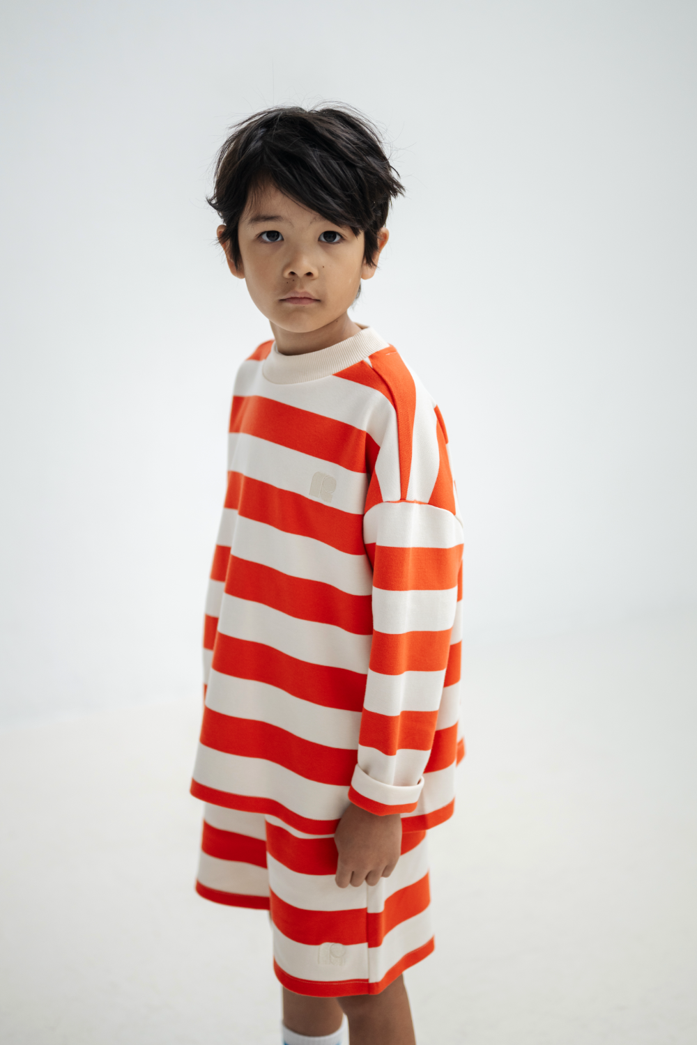 This Repose AMS striped sweater combines warm orange and soft ecru tones with a timeless silhouette. The white Repose logo on the chest adds a subtle branded detail, making it an easy everyday piece with a modern feel.