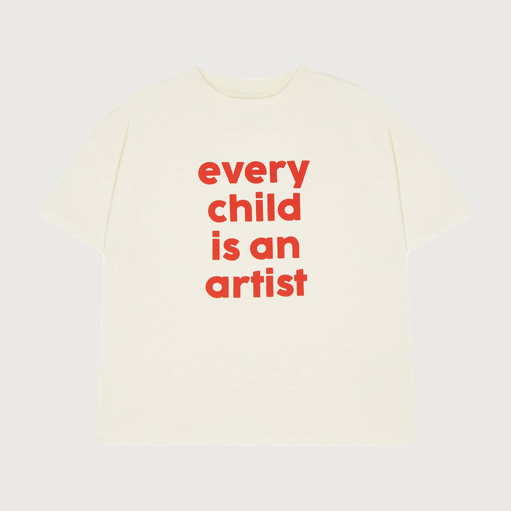 This t-shirt carries a beautiful message in a bold design. Set against a clean Ecru background, the phrase "Every child is an artist" stands out in striking Red typography. It’s a mantra for the dreamers and the makers.