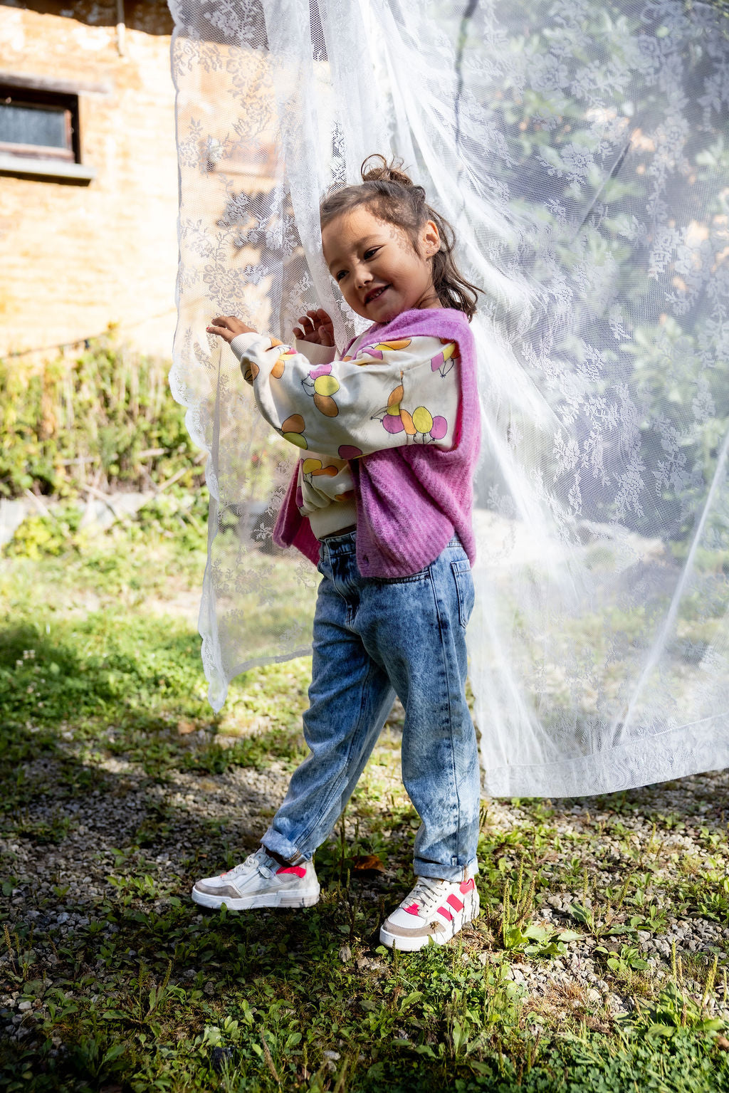 Fitting & size: slightly oversized. Take the same size as the age of your kid or size up for a more oversized fitting.