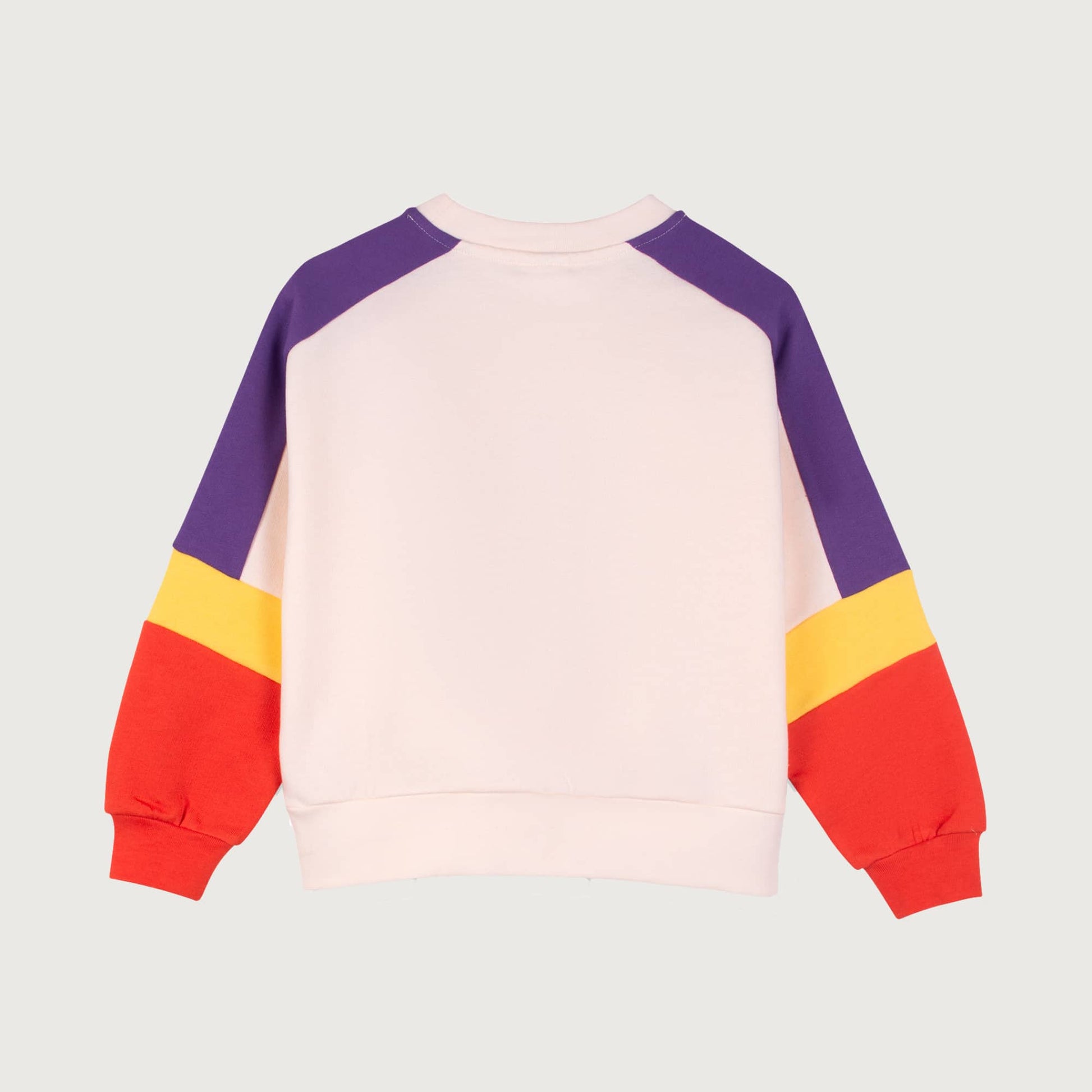 Colour takes the lead in this sweatshirt, with block of ecru, orange red, violet and sunshine yellow bringing a bright, summery energy.