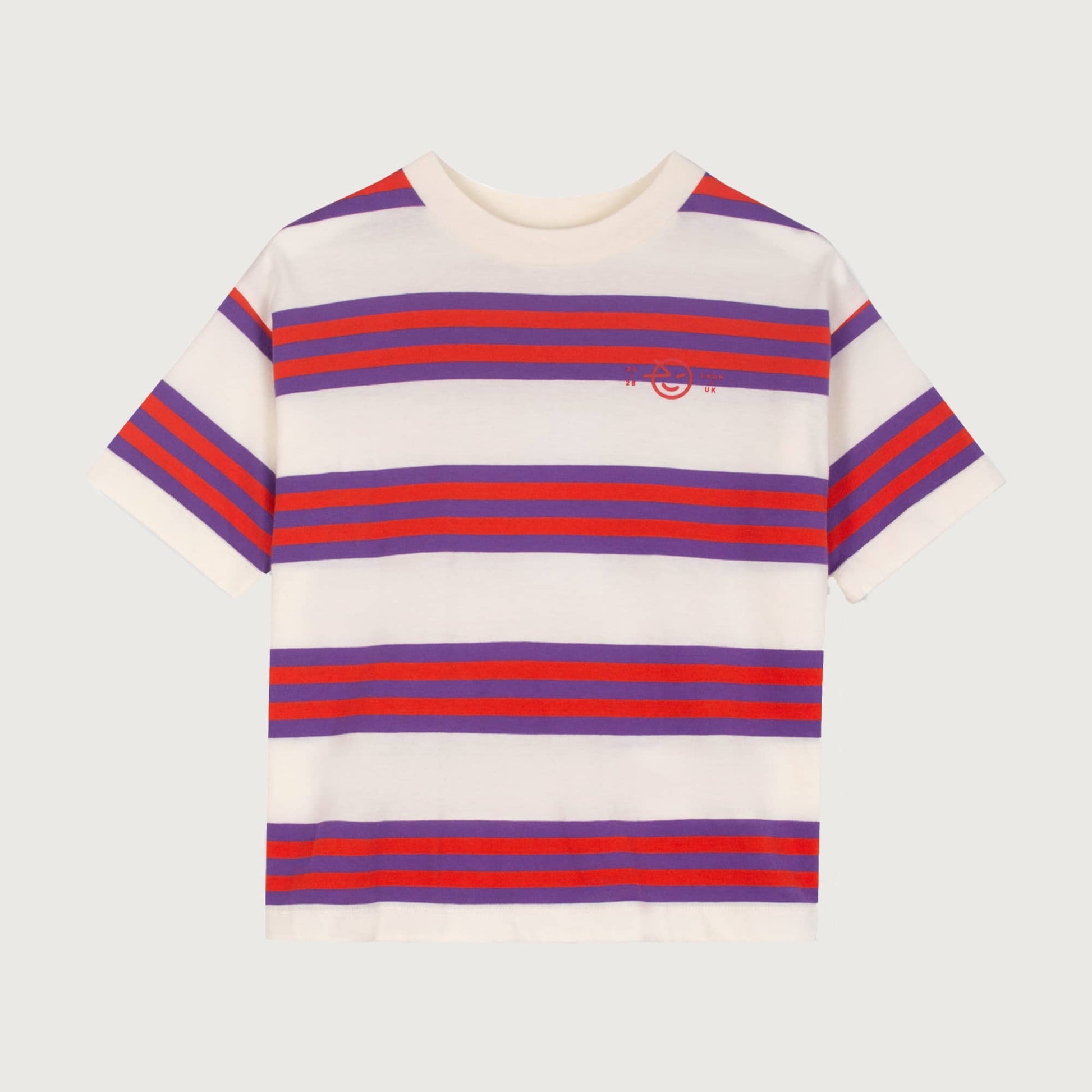 Made from 100% organic cotton, this t-shirt is light, breathable and perfect for sunny days. The pale lemon base with violet and sunglow red stripes adds a joyful burst of colour, while its slouchy, boxed fit with dropped shoulders keeps it relaxed and roomy for growing kids.