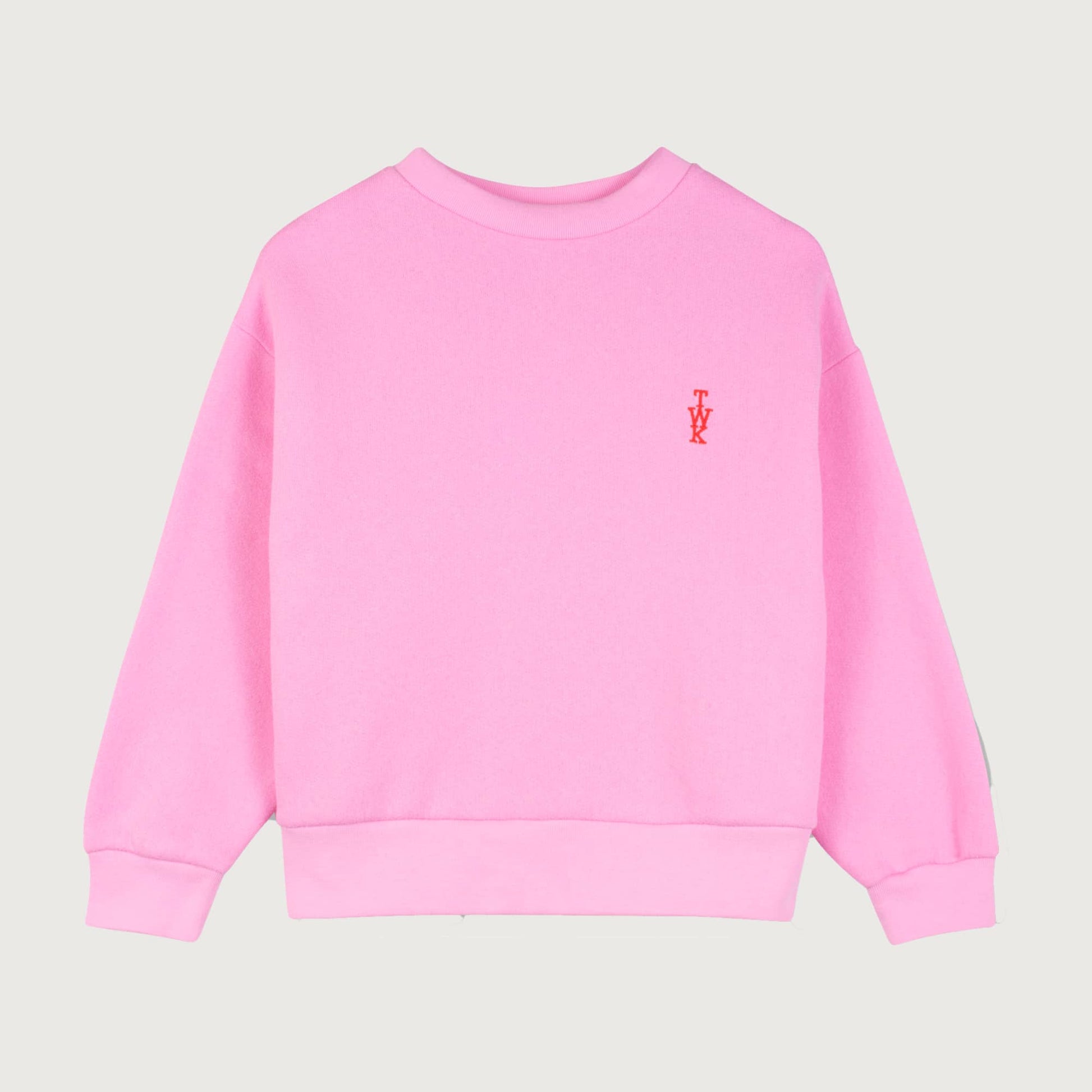 This feel-good sweatshirt is understated at the front and full of fun at the back. The candy-pink base features subtle red TWK embroidery, while bold Chez Wynken artwork across the back adds a playful burst of character. Dropped shoulders and ribbed trims create a relaxed, easy-to-wear fit. Made from a brushed poly-cotton blond that's slightly heavier than standard jersey.
